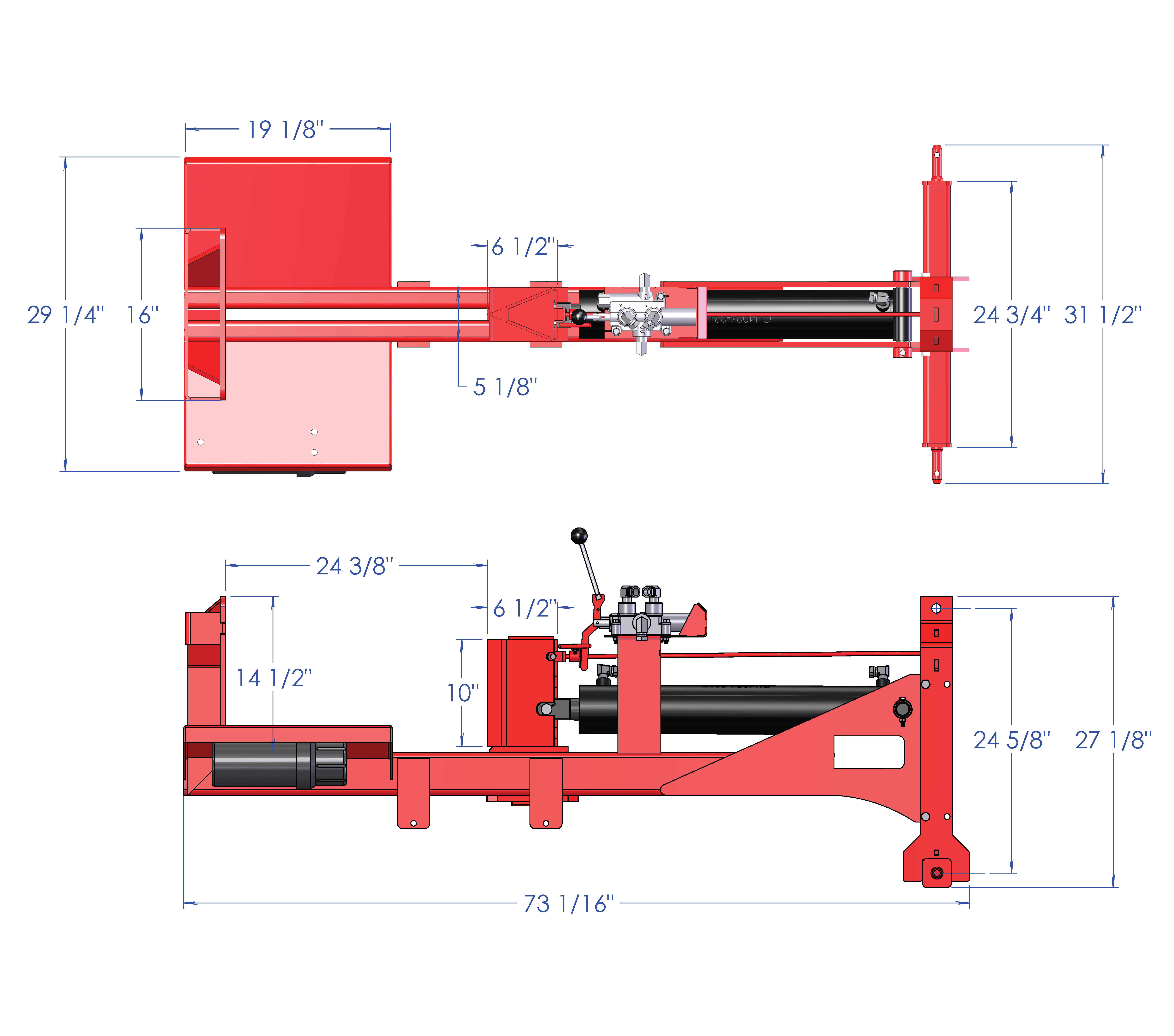 This Woody 3 point Log Splitter is fueled by the tractor’s oil outputs. This 40-24 model can split horizontally and vertically by changing the 3 point clip position. Lengths of 24".
