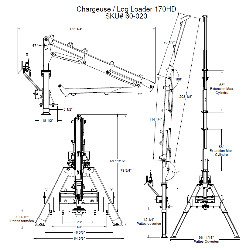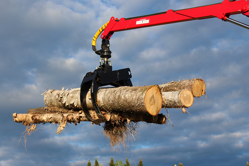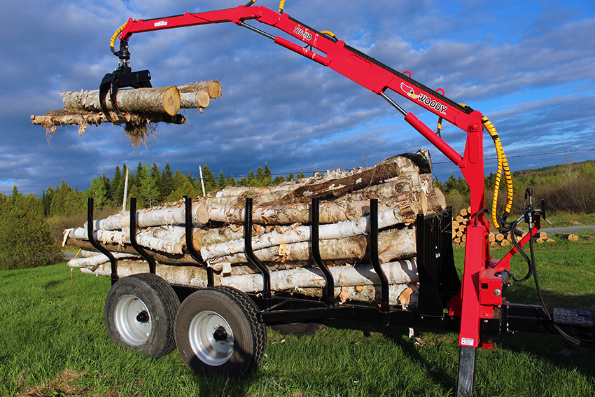 Constructed of sturdy and durable material, the 170-HD Woody Log Loader model is designed for tractors from 90 HP and more, skidders and trucks. It has a reach of 17'.