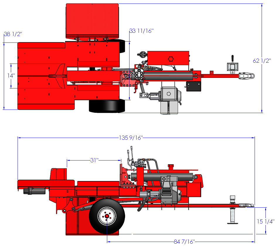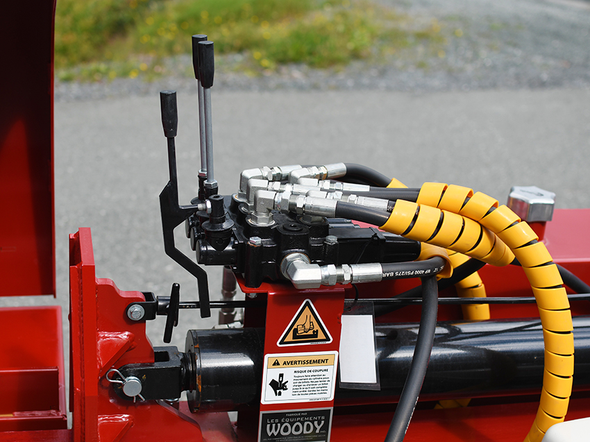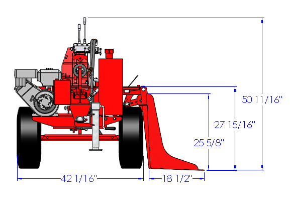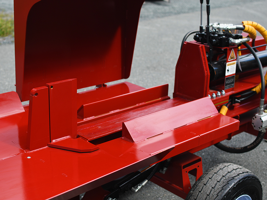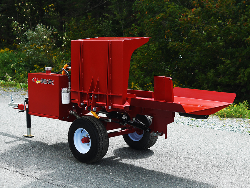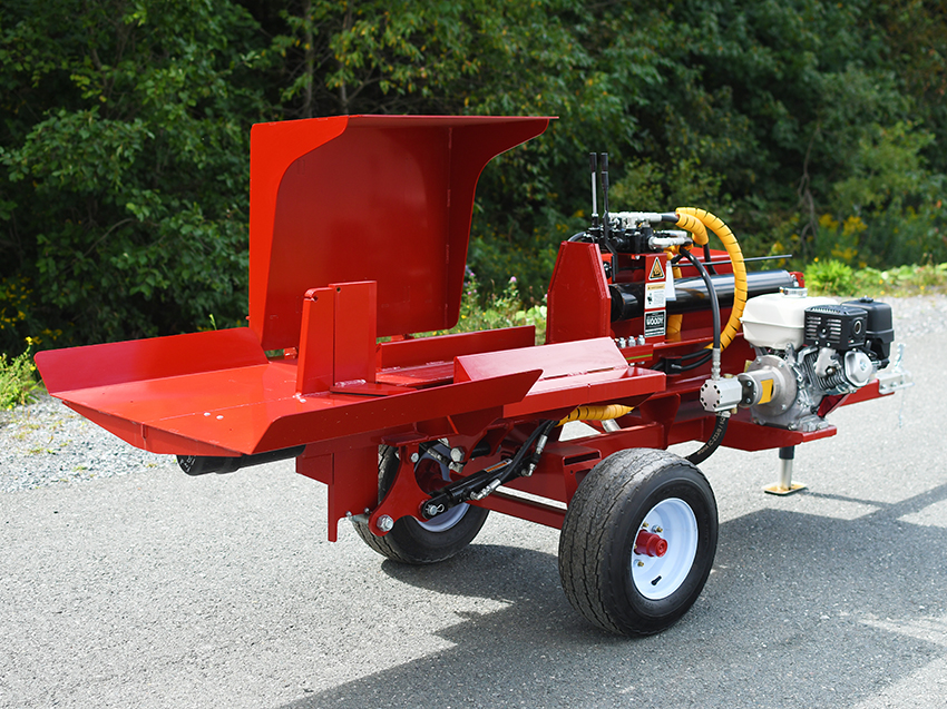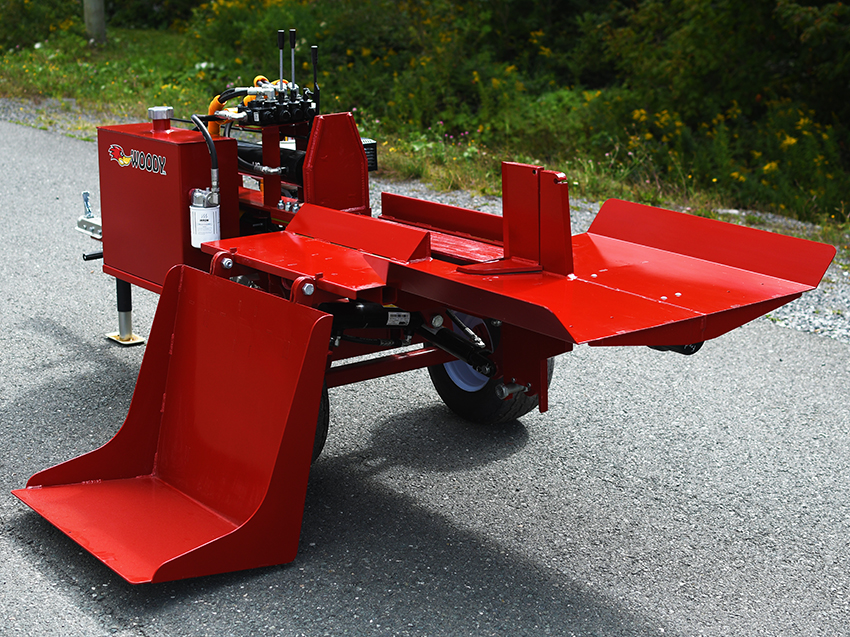 This Woody 40-30 4-Way Wedge Standalone log Splitter model is designed for commercial use. It is equipped with a 9 HP Honda engine, a 13.0/4.2gpm 2 stage pump, a 15 gallon tank, a stroke length of 30”,a Log lifting, a 2” hitch coupler and this splitter is equipped with a lever to adjust the cut to 3 different positions. It can split wood in the horizontal position.
