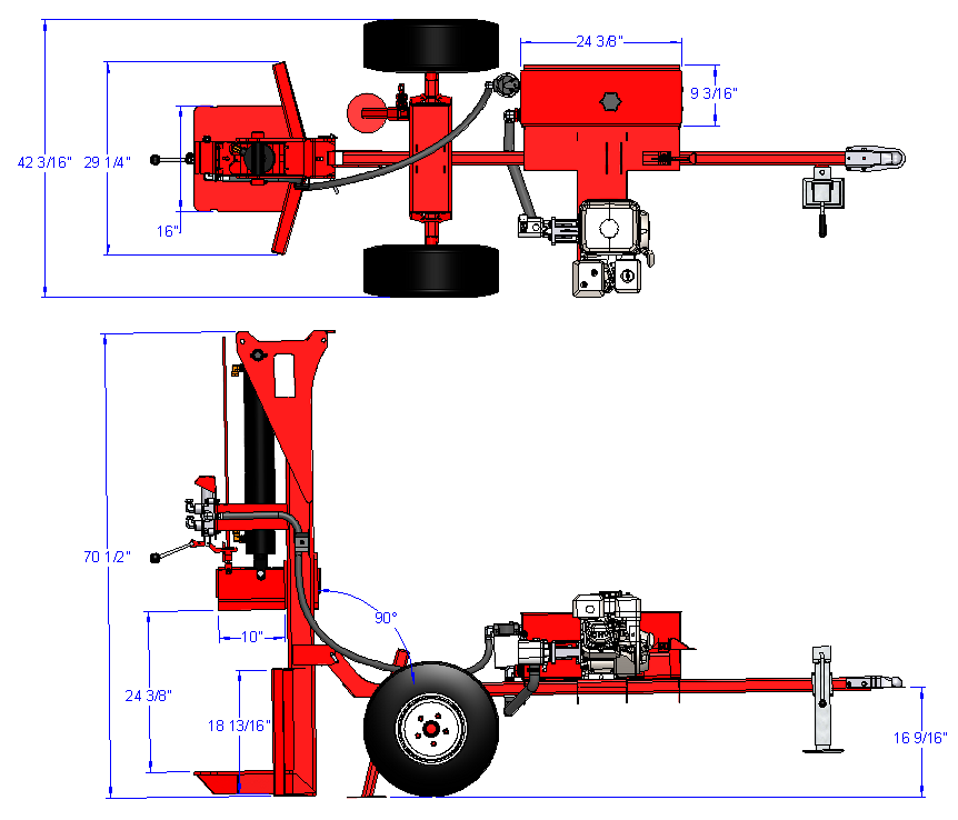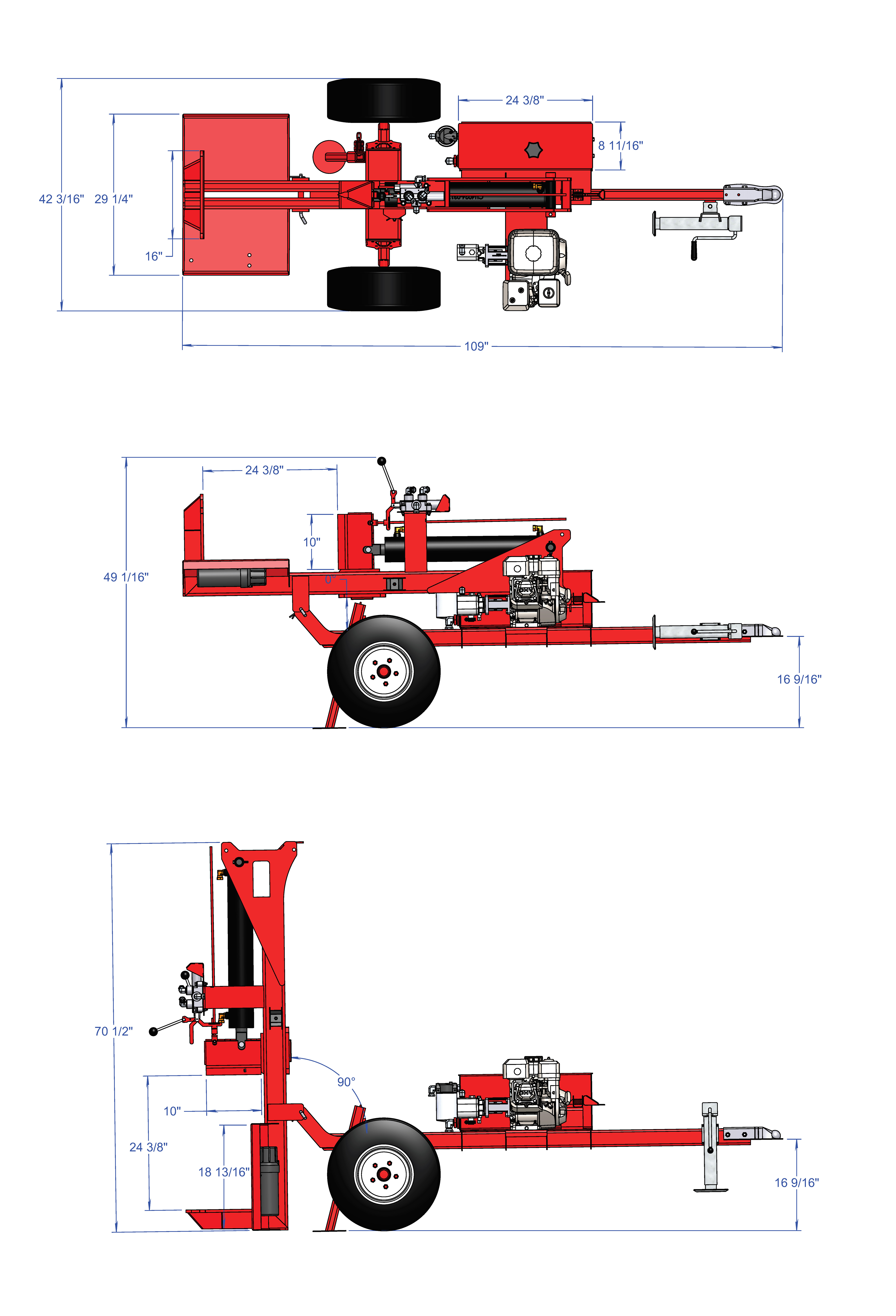 This log splitter can split up to 30 inchs. Get the full power of Honda 5 Horses power. Built with 2 stages pumps 8.8 GPM it develops 20 Tons of power thanks to it's 4'' cylinder piston.