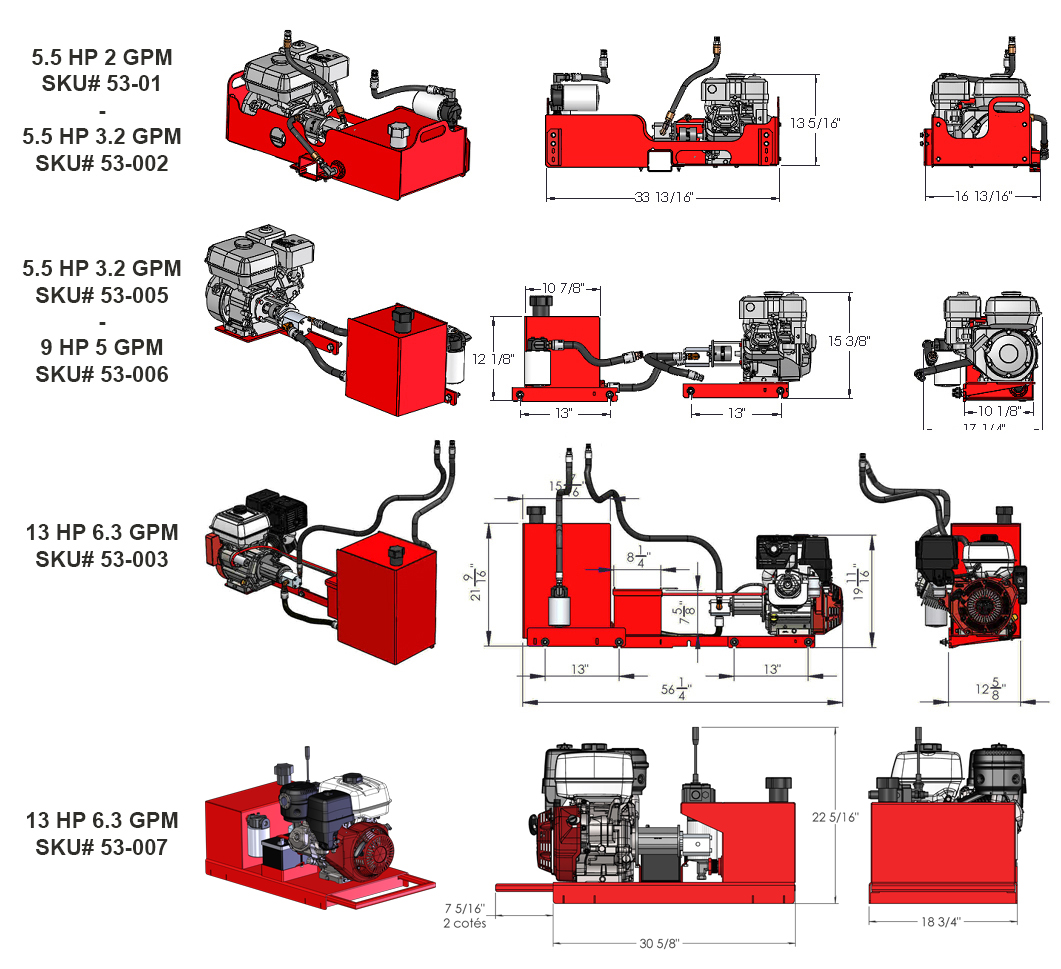 Tanque de aceite de 4.5 galones, bomba de 6.3 GPM y motor 13 HP Honda.​