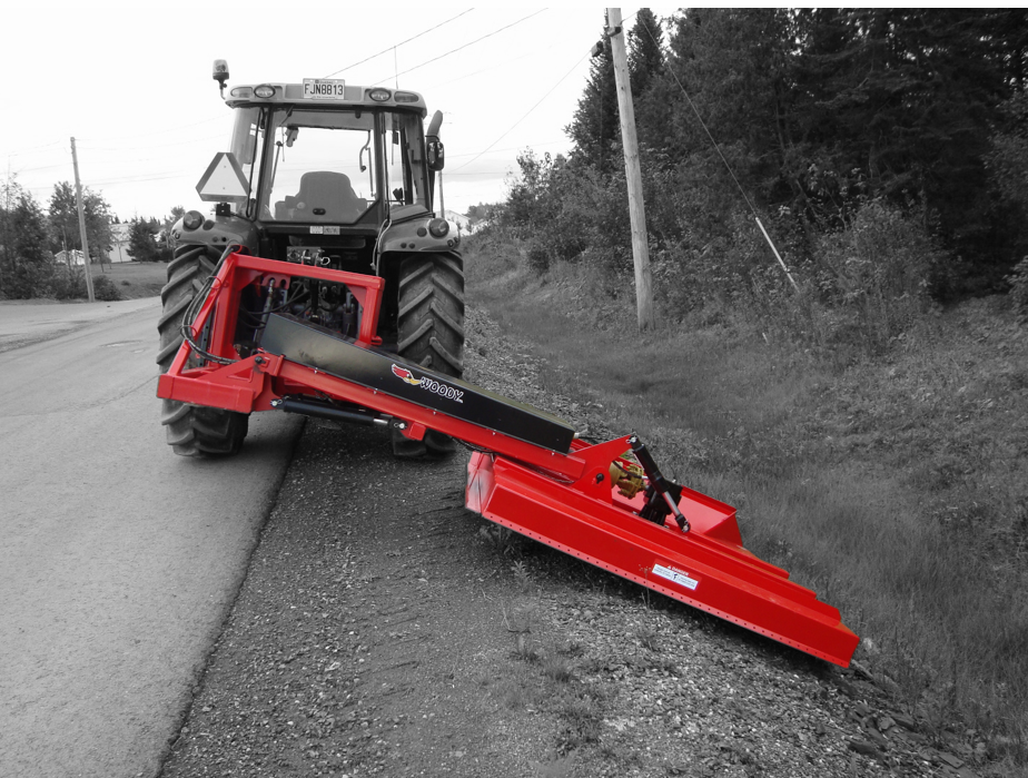 Les débroussailleuses latérales Woody sont munies d'un système hydraulique sécuritaire sois un système de levage hydraulique simple action, d'une valve a bille sur le système de levage pour sécuriser la maintenance, d'un télescope hydraulique pour prolonger la portée maximale de coupe (cette dernière est optionnelle) et d'un pivot hydraulique pour positionner la tondeuse au niveau où à angle.