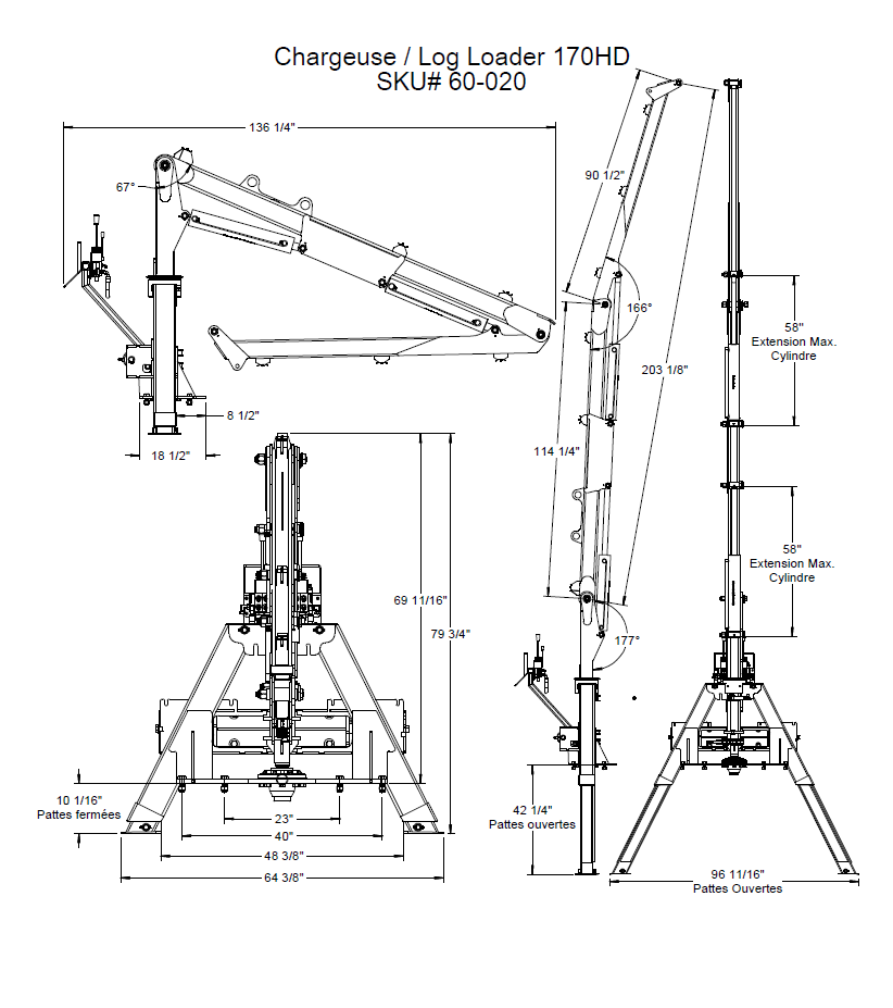 Construite de facon robuste et durable, le modèle Woody 170-HD est concu pour les tracteurs de 90 HP et plus, les "skideurs" et les camions. Il a une portée de 17'.