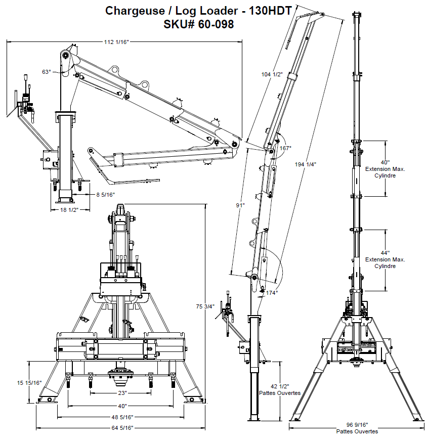 Le modèle de chargeuse Woody 130-HDT, munie d'un mât de 13' et d'une extension de mât télescopique de 3' est idéal pour les tracteurs de 40 - 60 HP, "les chenilles" et petits camions. Robuste et polyvalente, cette chargeuse possède le meilleur indice qualité/prix dans sa catégorie.