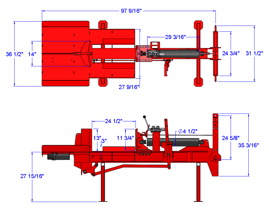 Cette fendeuse à bois Woody 3 points est alimentée par les sorties d’huile du tracteur. Ce modèle 40-24 peut fendre à l’horizontale seulement, elle peut fendre en 4 morceaux et ou en 2 morceaux. Cette fendeuse peut fendre des buches d'une longueur de 24’’.