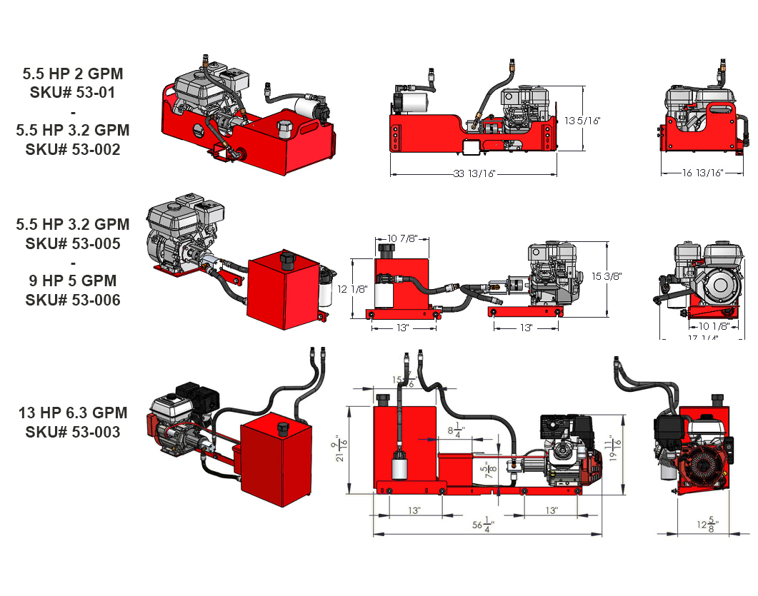 MODÈLE | 5.5 HP 2GPM | 5.5 HP 3.2GPM | 5.5 HP 3.2GPM | 9 HP 5GPM | 13 HP 6.3GPM |
